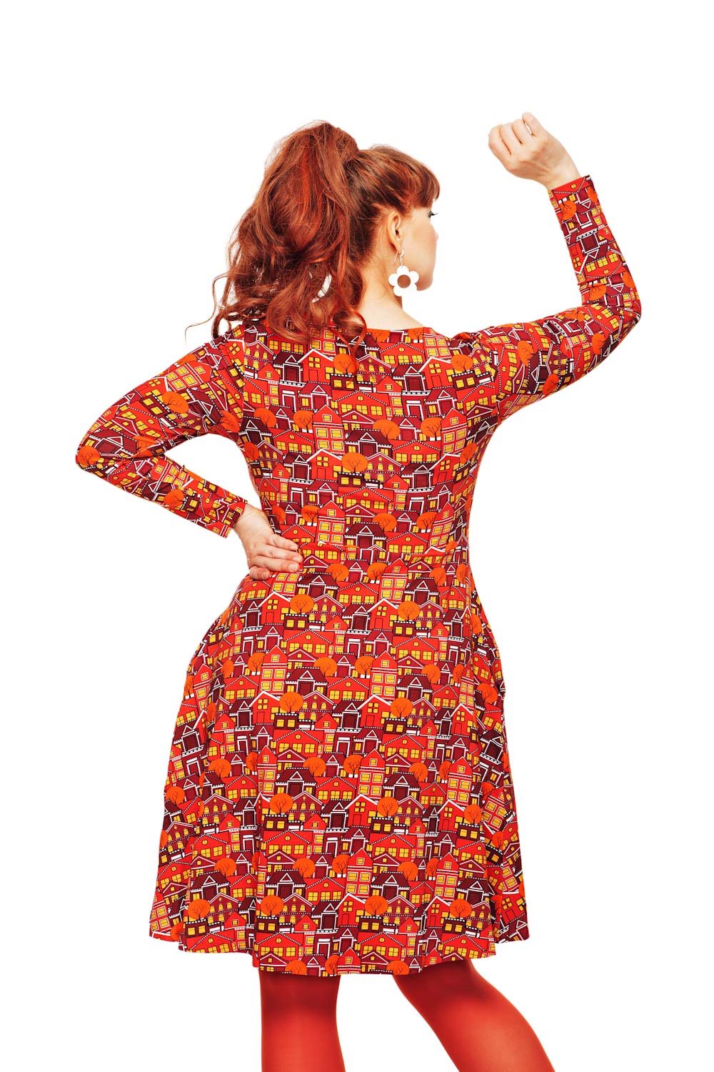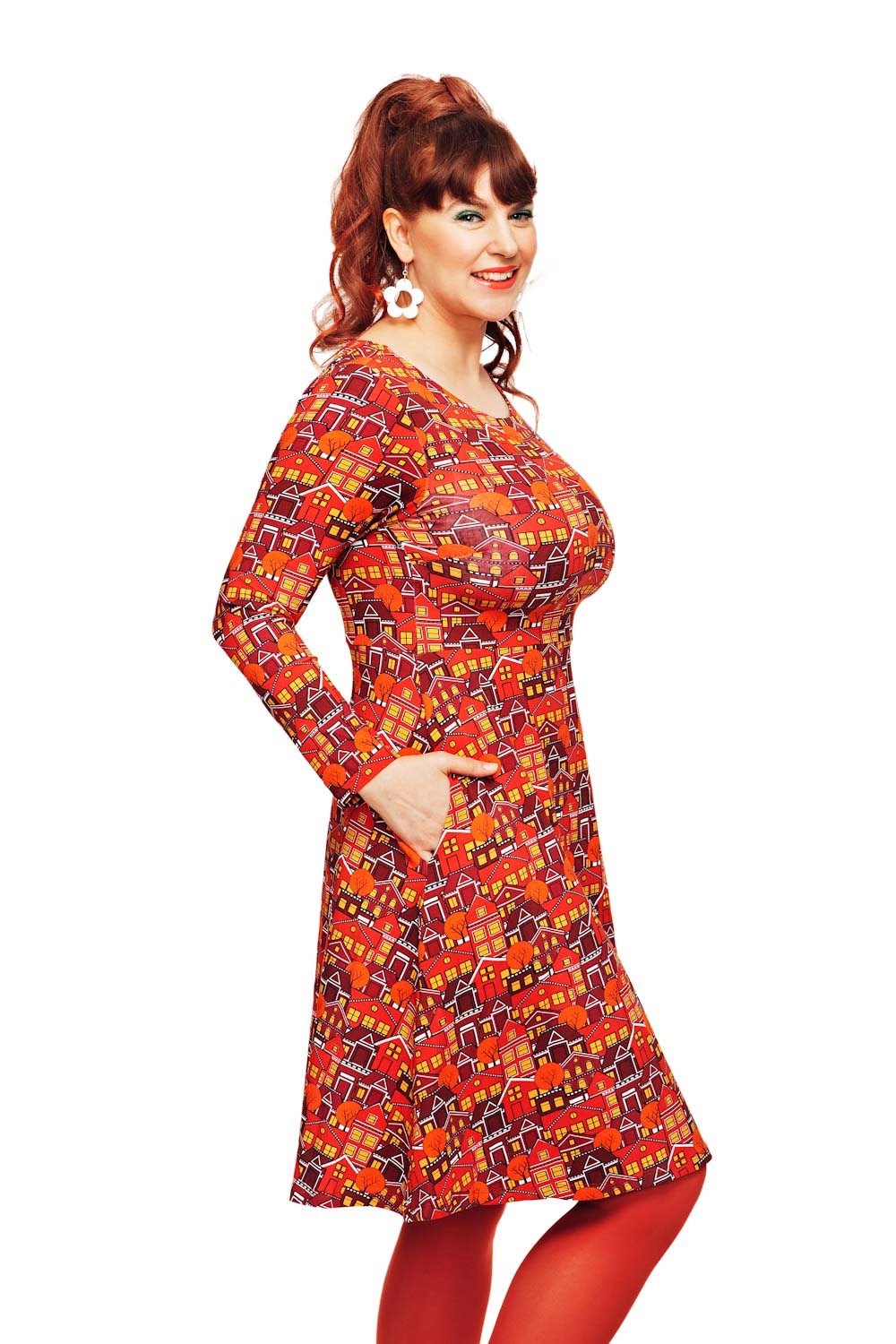 Kajsa is a long-sleeved dress in soft organic cotton jersey with a wide skirt and pockets.