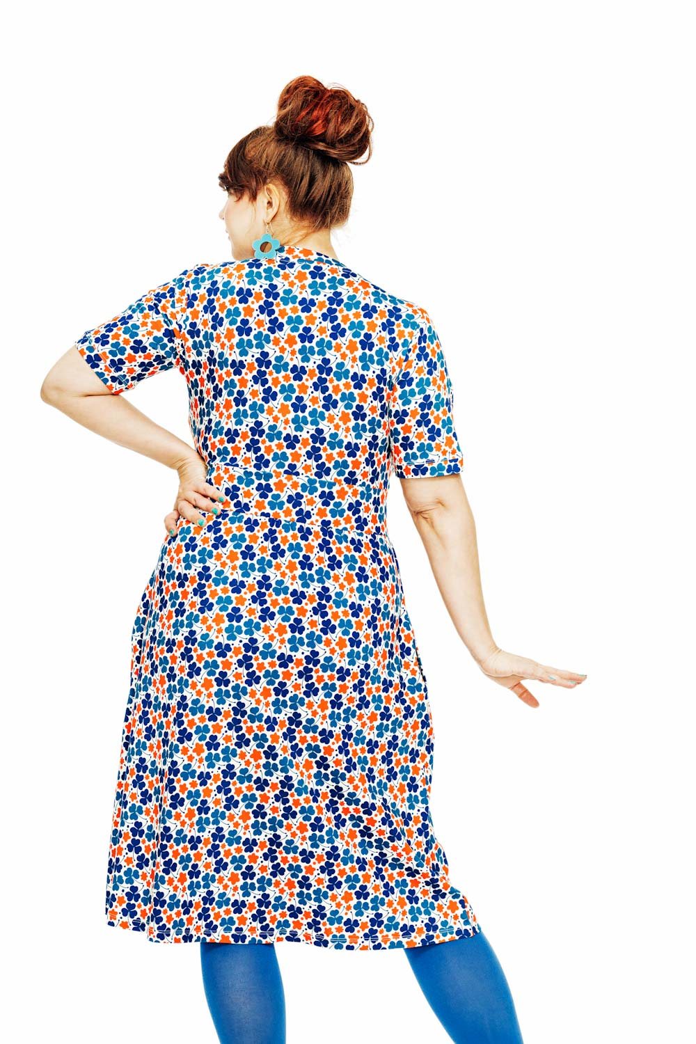 The fabric is called Klöver Orange, a retro-inspired print with a clear nod to the 1970s.