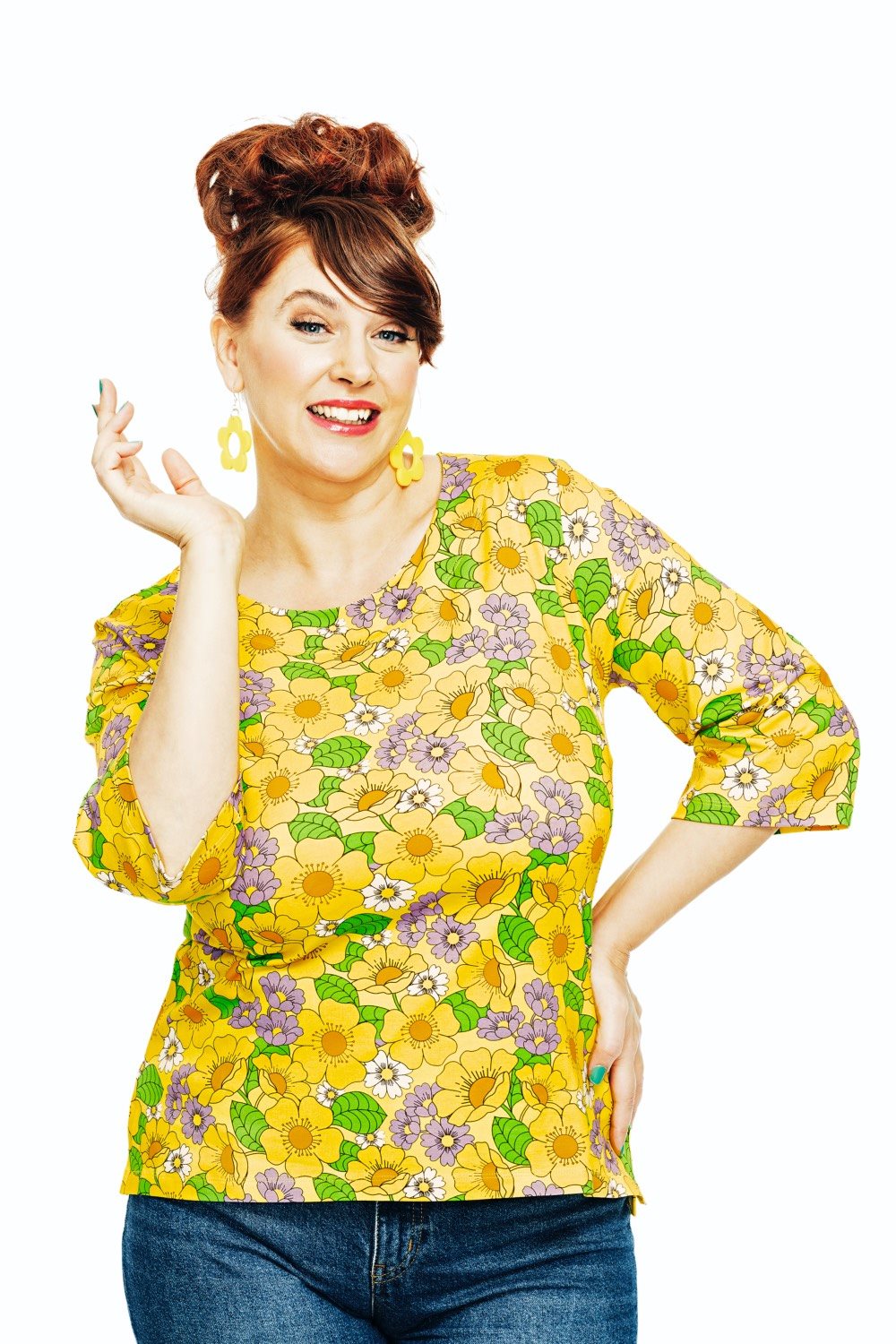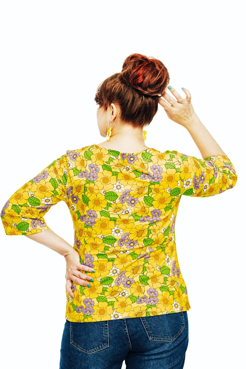 The Vendela top is made from lovely organic cotton jersey. It features an A-line shape with a round neckline and three-quarter-length sleeves. The design is more fitted at the top and wider towards the hem. The top features side slits that create a flattering fit.