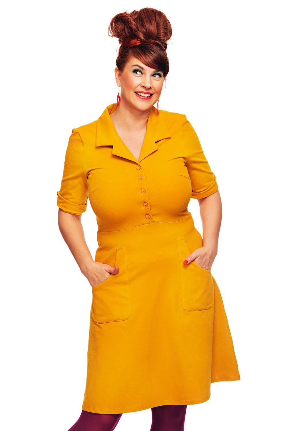 Monica Jeans is a 70s-inspired shirt dress in cotton. The style features beautiful details such as a button-down front, sleeves with turn-up and button, a collared neckline with lapels, and front pockets. A dress that feels both comfortable and stylish to wear!