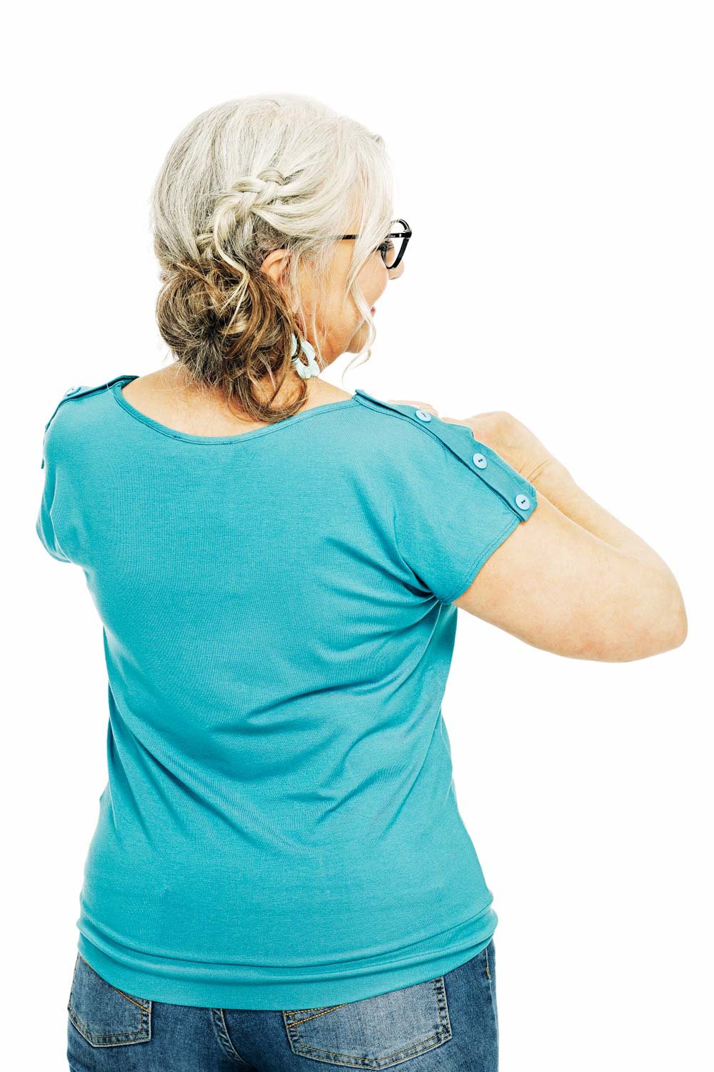 Garment fit: The top is regular to roomy in size. The fabric has stretch.