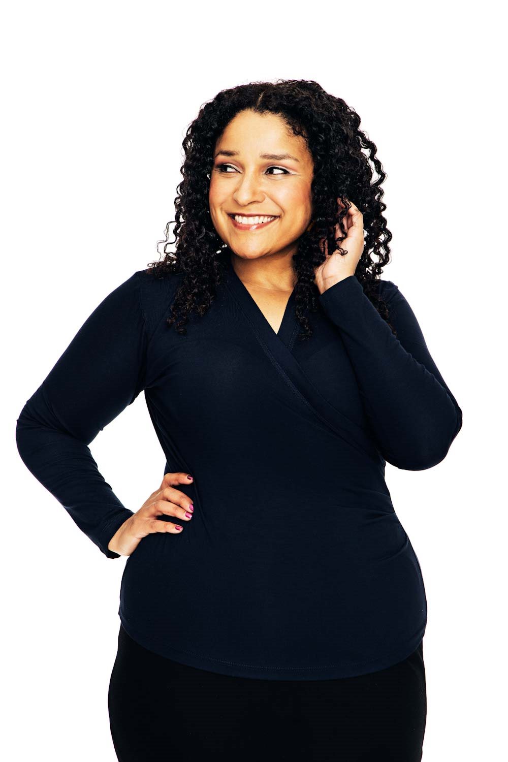 Our Susanne top is a flattering style with soft viscose fabric. With long sleeves and a v-neck with wrap effect.