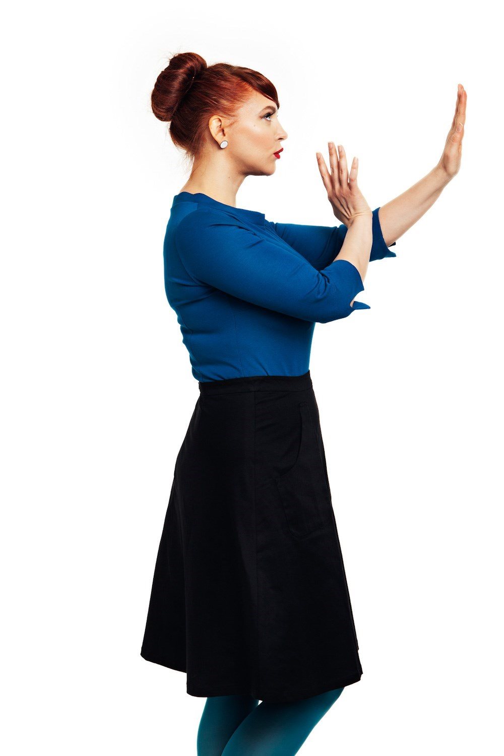Sonja is a classic skirt style that looks great regardless of season or trends. The skirt has side pockets, a comfortable waistband, and a zipper at the back. It is lined so it drapes nicely and doesn’t cling to your tights.