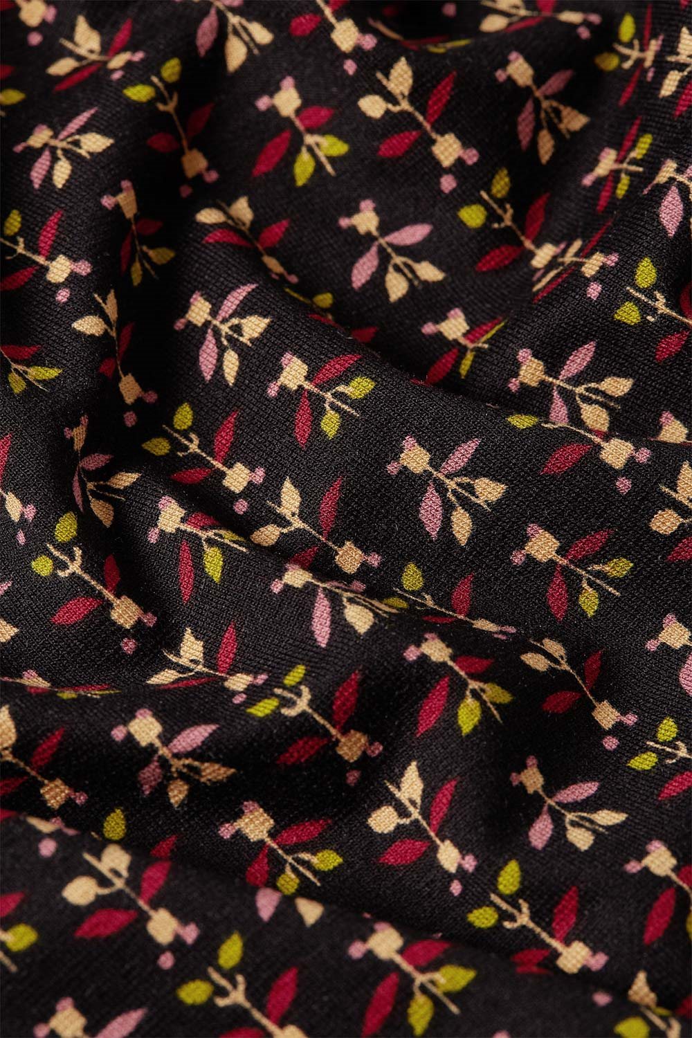 Color: Black base with a floral print.