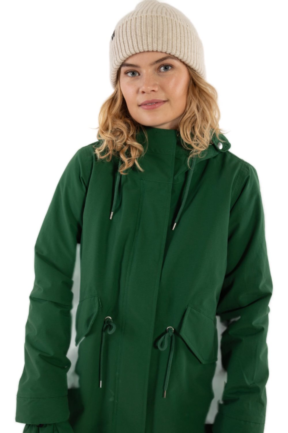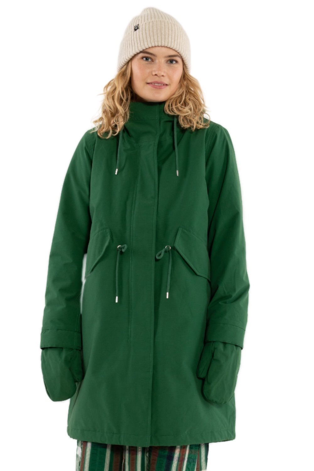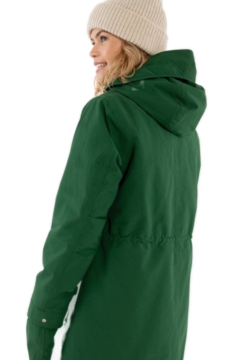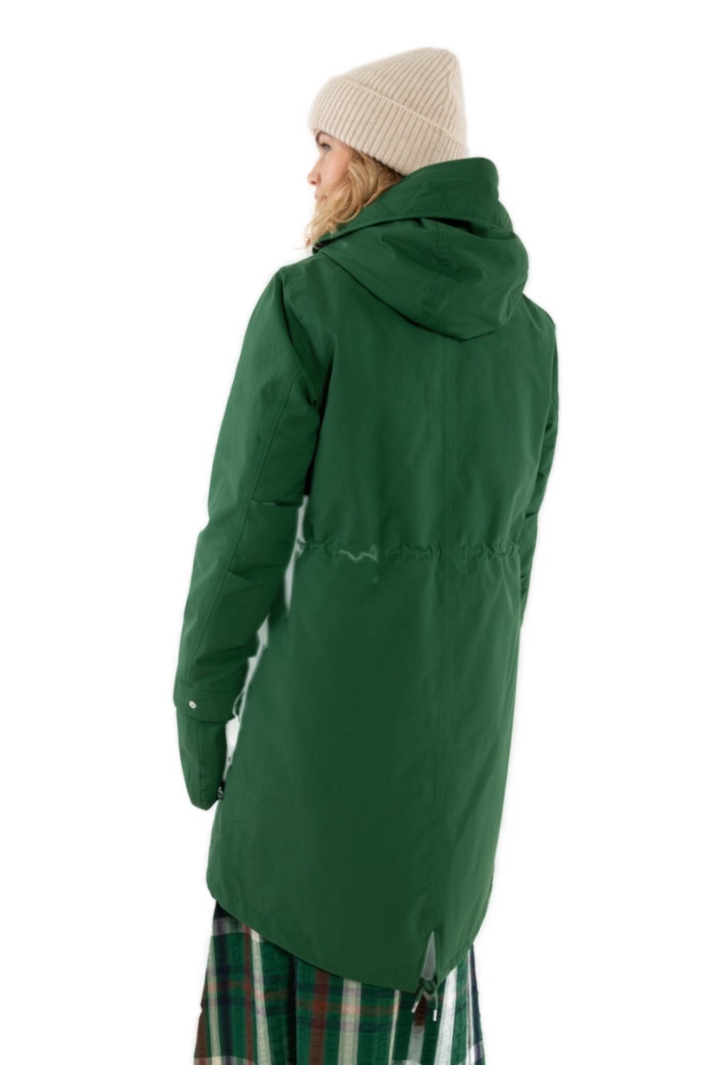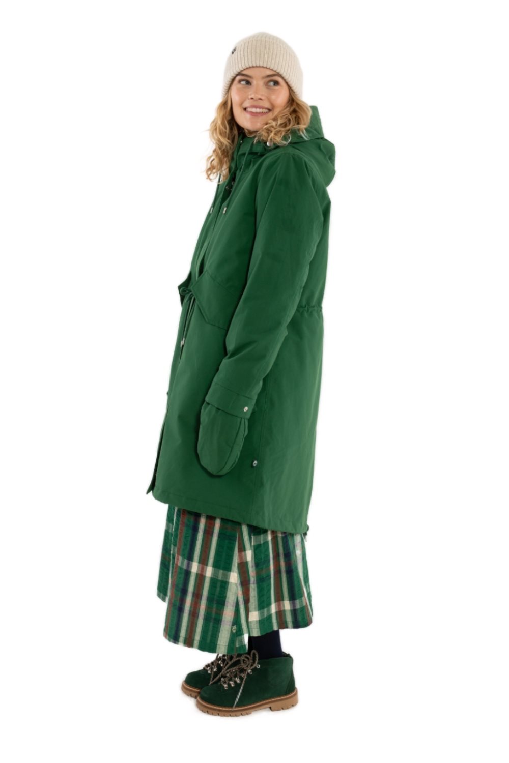 Svanneke Winter Parka from Danish brand Danefae is a stylish and technical winter jacket designed to keep rain, snow, and cold out while keeping the wonderful warmth in. The parka is windproof and waterproof, with fully taped seams, making it 100% waterproof up to a water column pressure of 5,000 mm. It features a warm and soft fleece lining on the inside, providing extra comfort and insulation on chilly days.