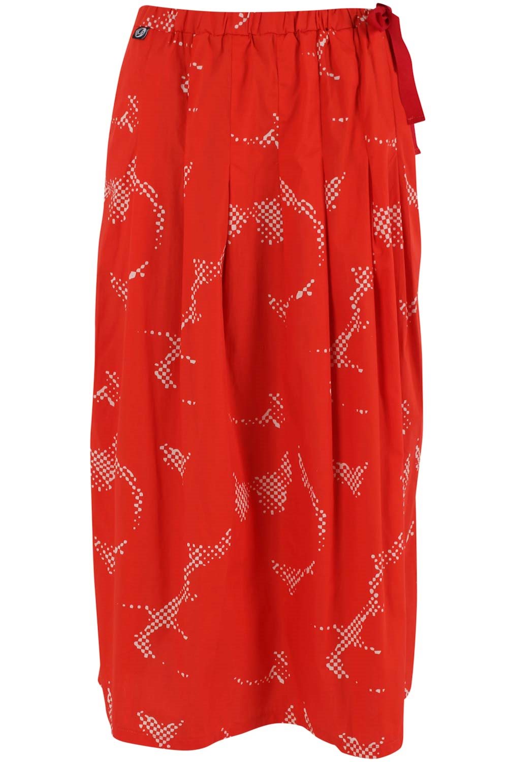 Comfortable and cool midi skirt in cotton poplin with an elastic waistband and side pockets. The waist can be adjusted with the elastic band, which ties at the side.