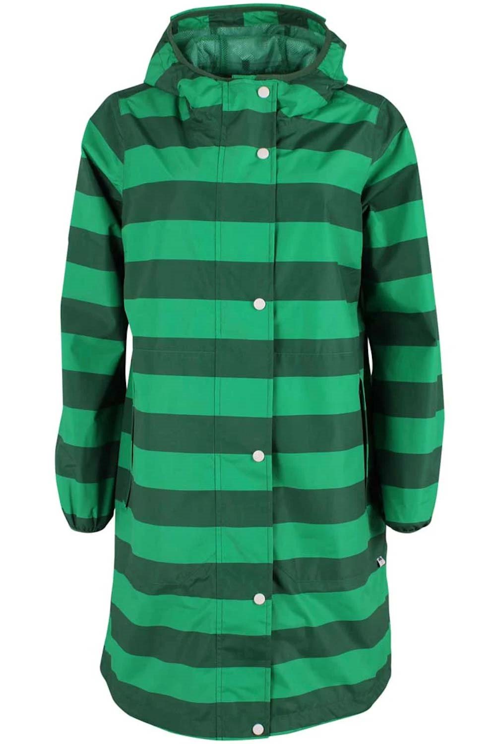 The Edith raincoat is one of Danefæ’s classic raincoats. The rain jacket has a simple, long, and roomy fit, with plenty of space for workwear or a warm sweater underneath. The raincoat has a water column rating of 8,000 mm and taped seams (over 3,000 mm means waterproof, so the coat is very waterproof). It is breathable and windproof. A double front zipper that can be opened from both the top and bottom makes the coat wonderfully bike-friendly. The zipper has a storm flap with snap buttons. The same type of flap makes the zippered pockets waterproof. The hood has a narrow brim and good depth, with room for a hat underneath. The hood features an elastic drawstring with stoppers, allowing the opening to be adjusted to suit the face and visibility as needed. The raincoat has a mesh lining on the inside. There is an elastic drawstring with stoppers at the hem, allowing the coat to be tightened around the legs for a nice shape and to keep out the wind. Elasticated cuffs make the jacket easy to put on and take off and help keep rain and wind out when worn.