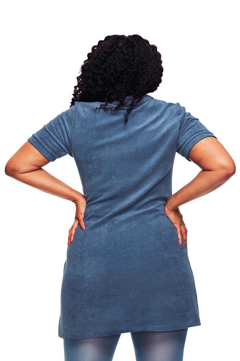 My is a stylish A-line terry dress with a retro 60s vibe that feels just as chic today. The dress is fitted at the top and looser at the bottom, featuring an elegant shirt collar, a small zipper, and two practical front pockets. Easy to style – wear it with tights or as a tunic over pants! My is perfect for both everyday wear and parties, quickly becoming a favorite in your wardrobe.