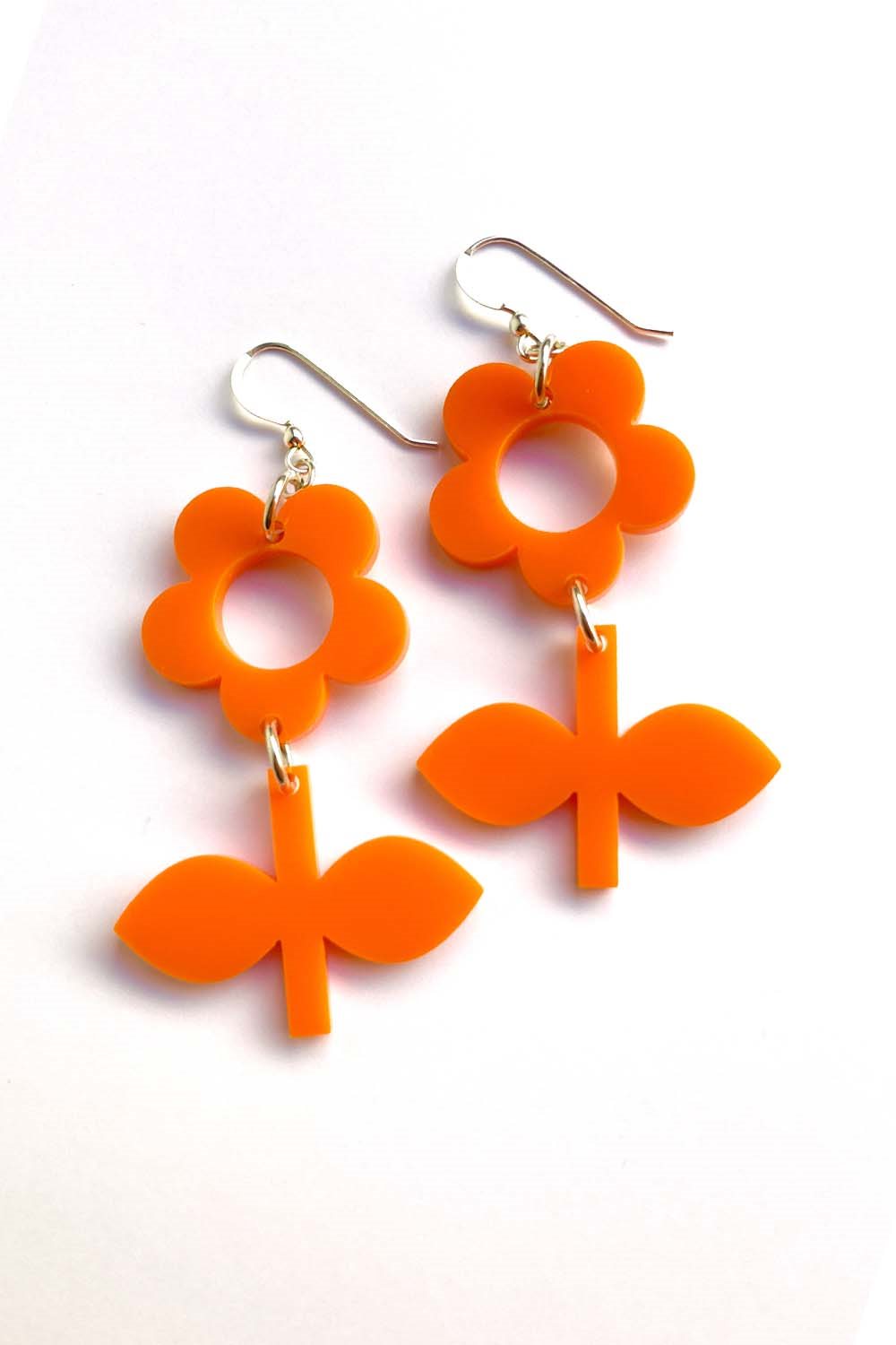 The Blom earring is available in several lovely color combinations and is made from sterling silver and laser-cut acrylic. Blom is the smaller version of this design; there is also a larger version called Flora. We also offer the flower styles Frö and Solo, which feature a single flower without a stem.