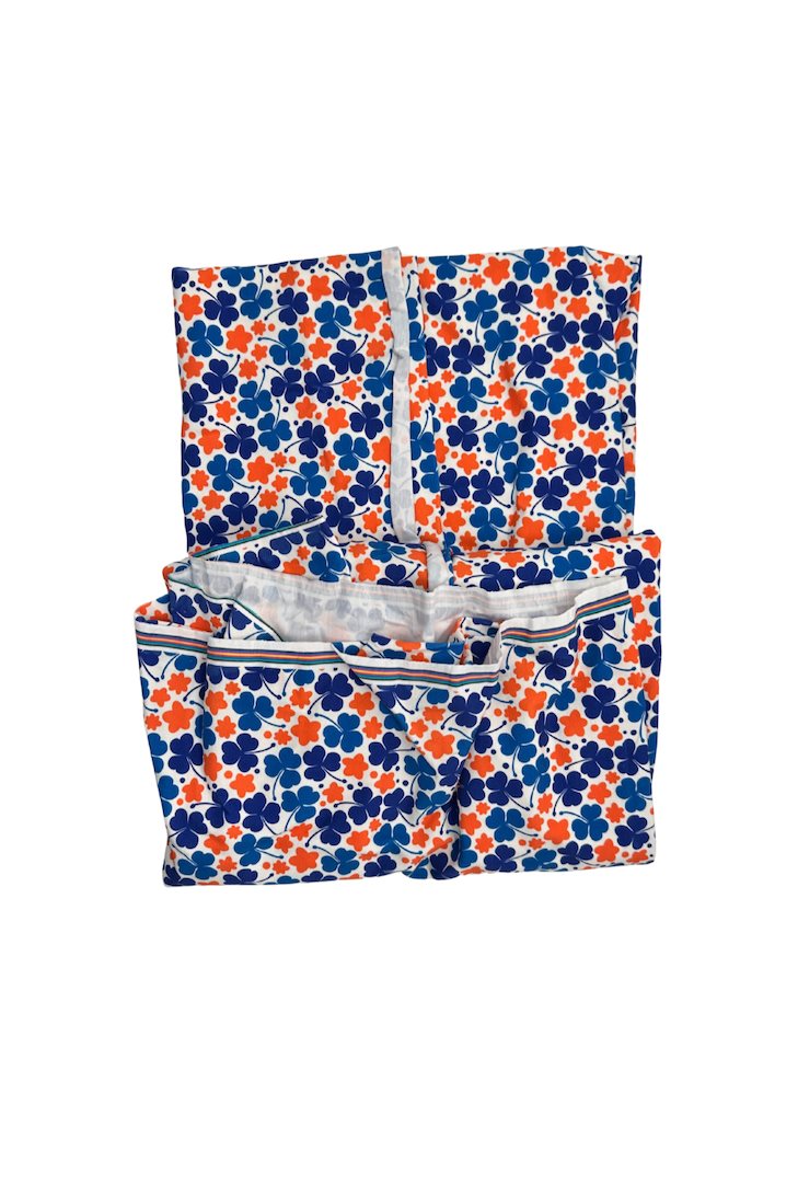 Mönstrat tyg i mjuk ekologisk bomullstrikå som kan sys upp i snygga, lättburna plagg, både för vuxna och barn.