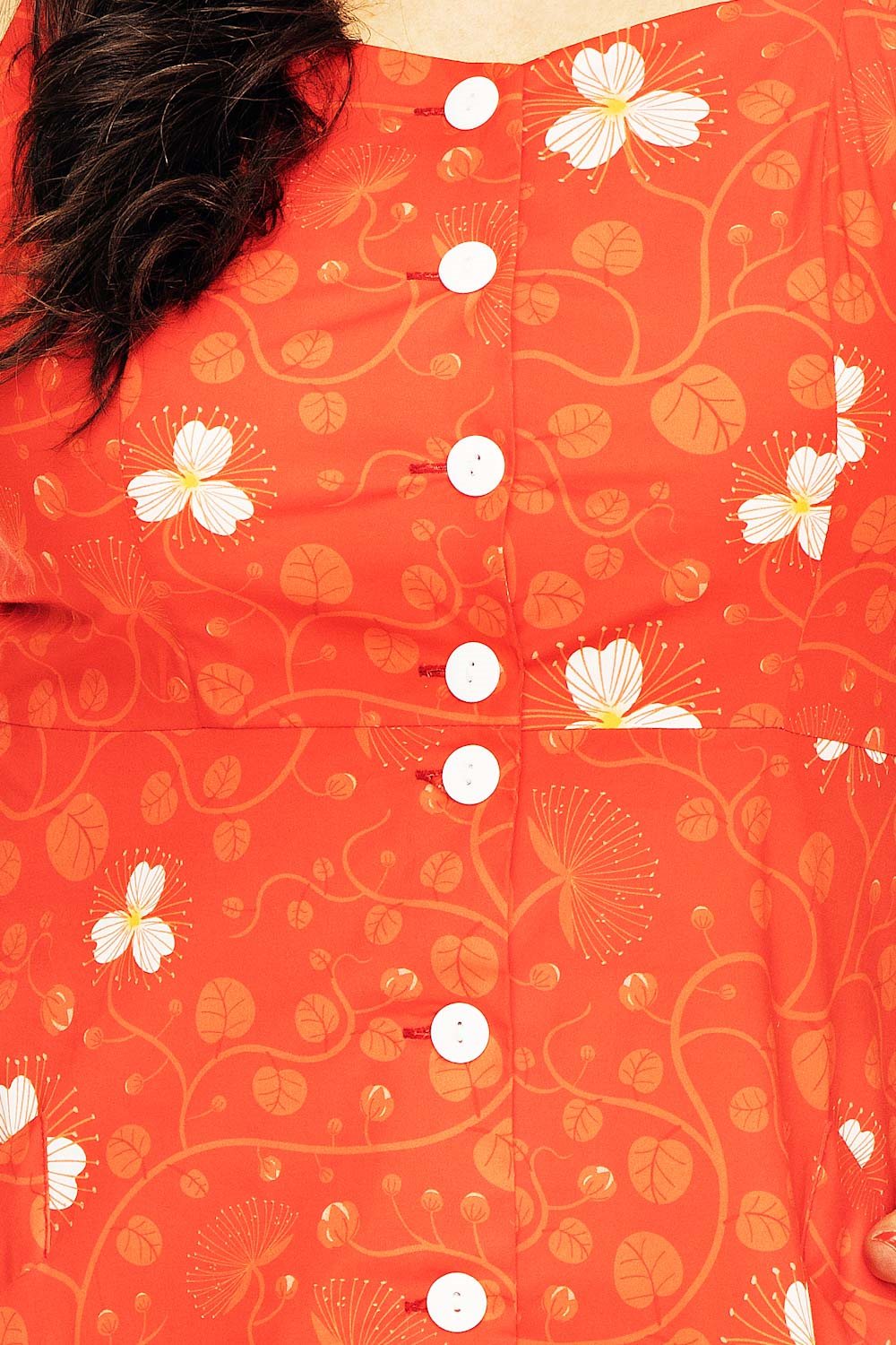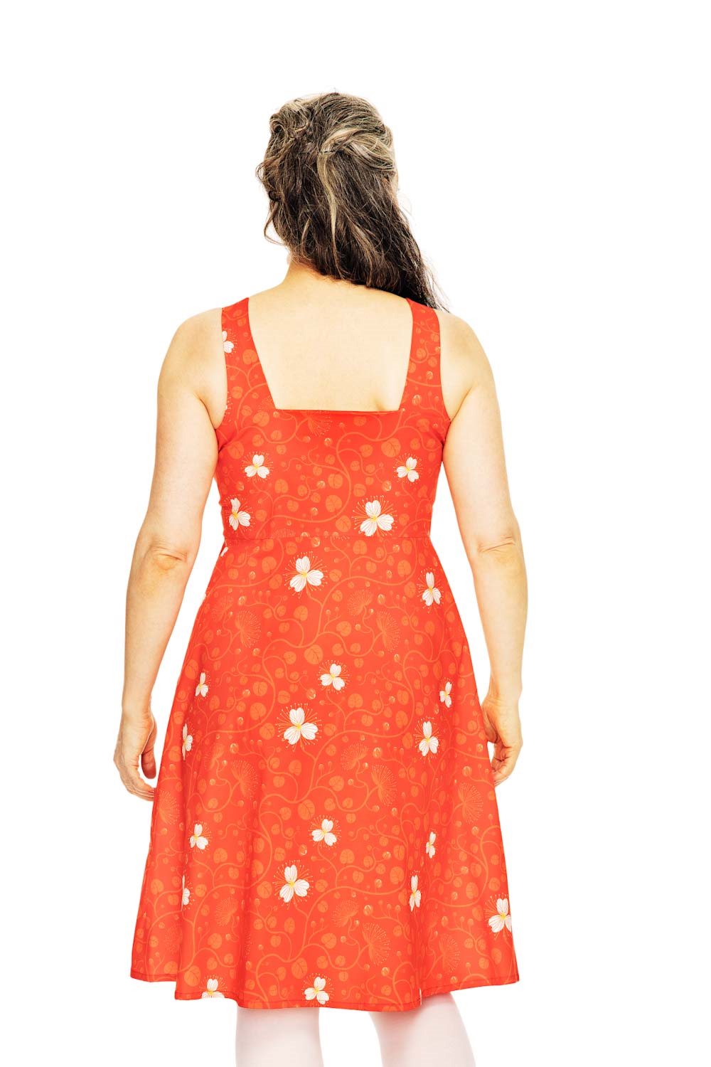 Maja är inspirerad av 50-talets hängselklänningar. Modellen i vävt bomullstyg har knappar fram, snedställda fickor och en lätt utställd kjol. Prinsesskärning i livet ger en fin passform. Klänningen är ärmlös och har delvis öppen rygg vilket gör den till en passande sommarklänning för varma dagar.