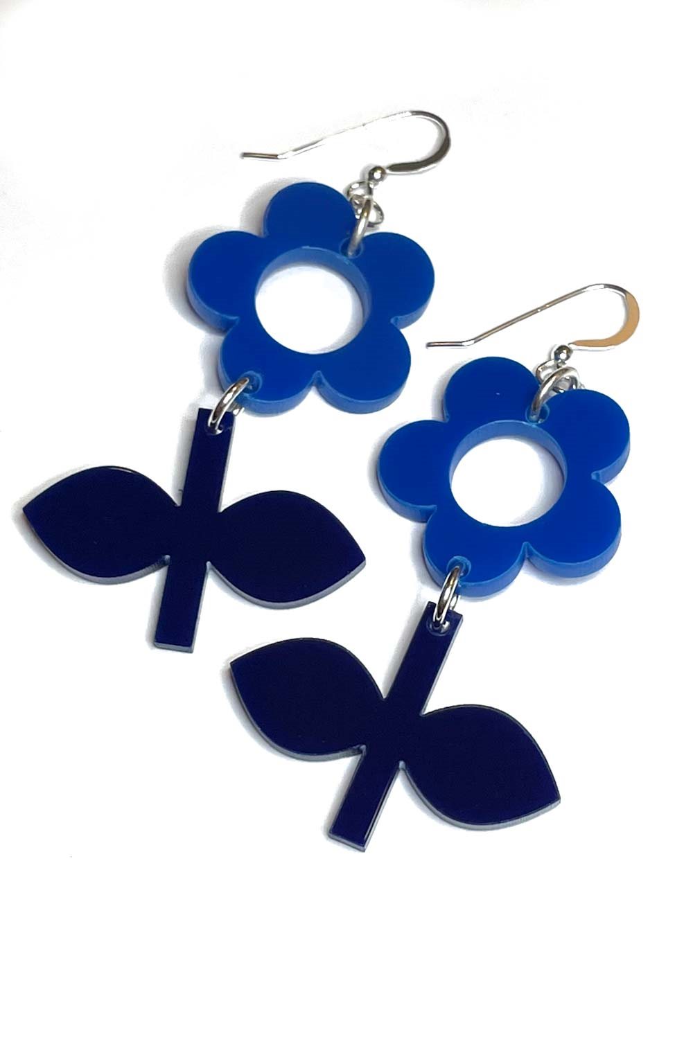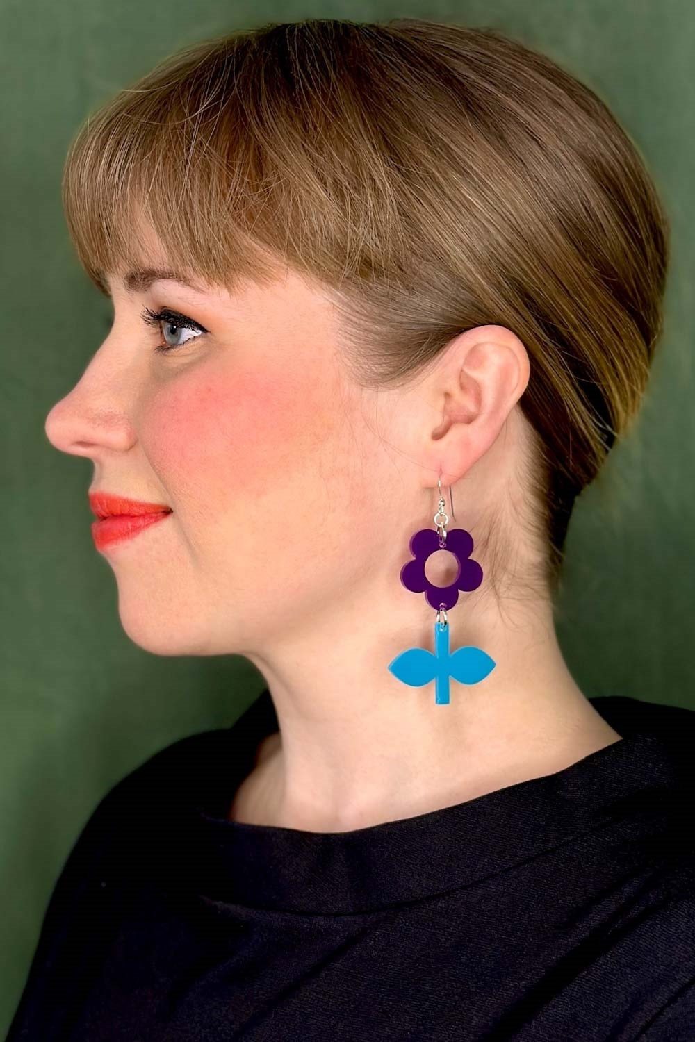 Örhänget Blom finns i flera härliga färgkombinationer och är tillverkat i sterlingsilver och laserskuren akryl. Blom är den mindre versionen av den här modellen, det finns en större version som heter Flora. Vi har även blommorna Frö och Solo som består av en enkel blomma utan stjälk.