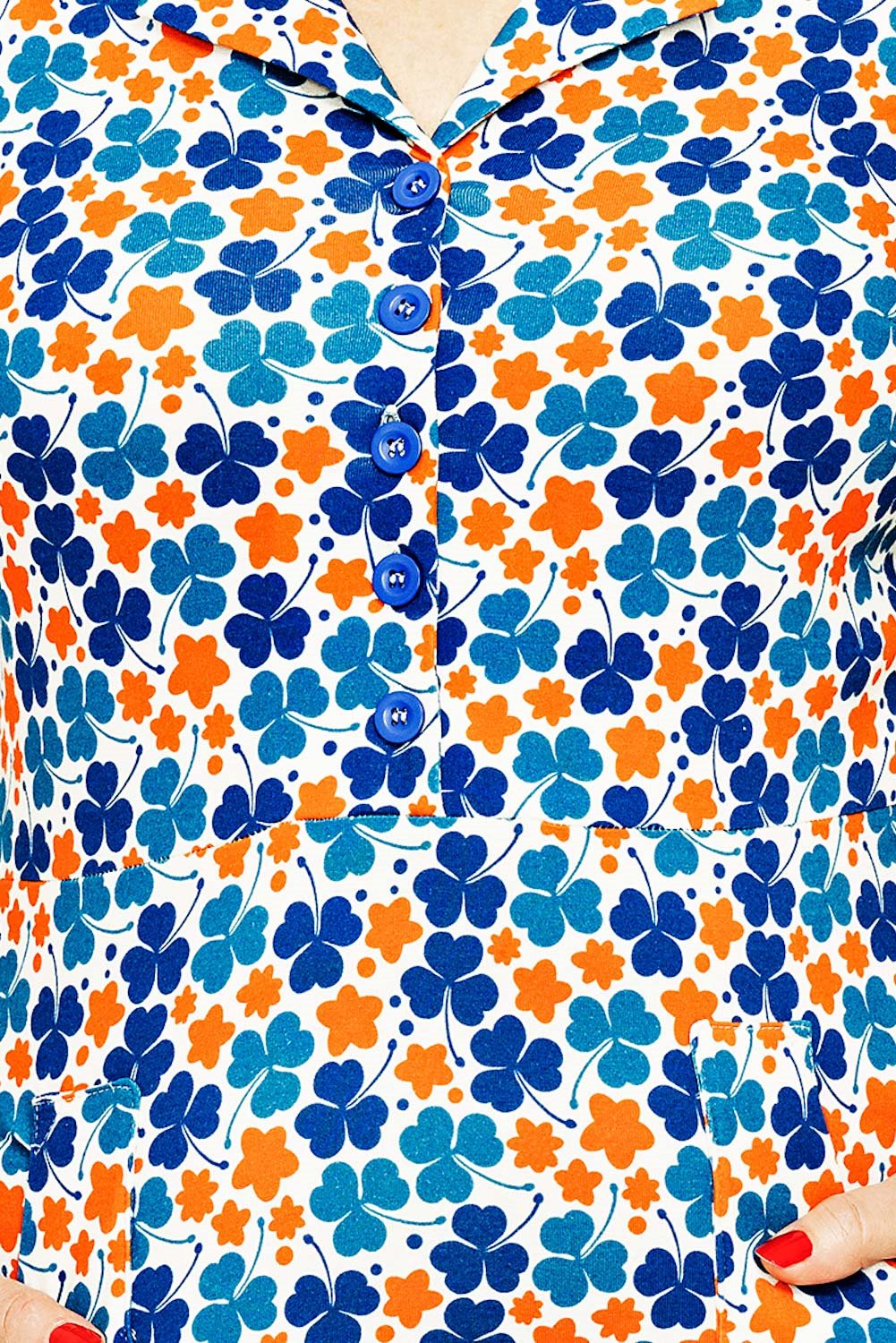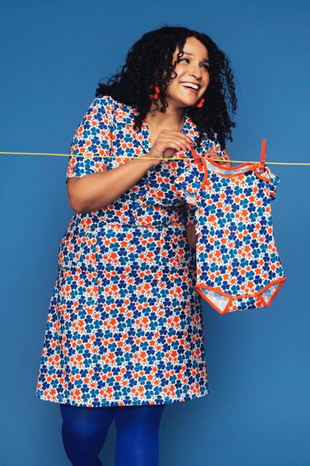 Tyget heter Klöver Orange och är ett retroinspirerat mönster med en tydlig blinkning till 70-talet. .