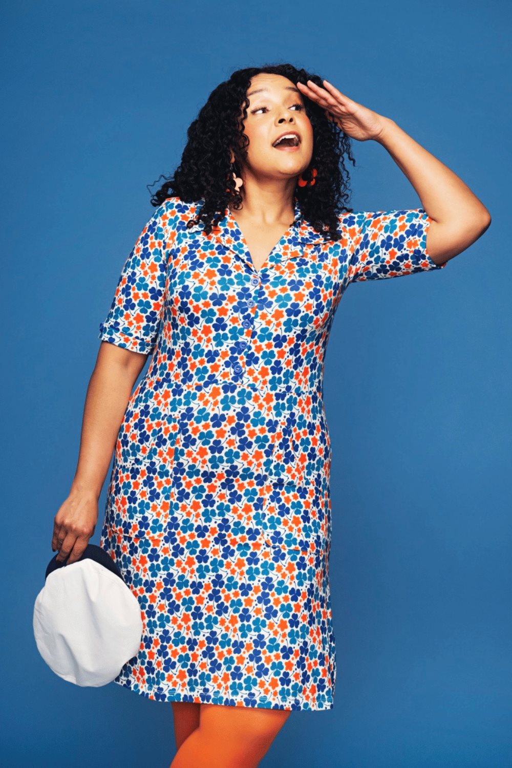 Monica är en 70-talsinspirerad skjortklänning i ekologisk bomullstrikå. Modellen har fina detaljer med knäppning fram, ärm med uppvik och knapp, krage med slag och påsydda fickor. En klänning att känna sig både bekväm och uppklädd i!