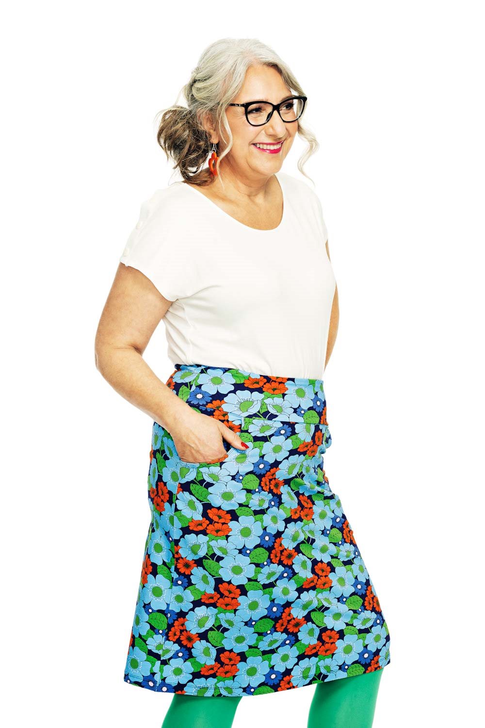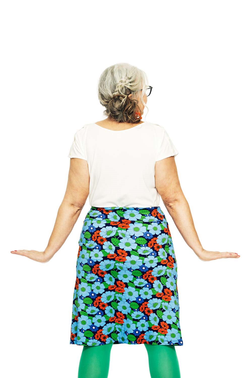 Majken är en skön trikåkjol med figurnära passform utan att kännas tajt. Fickorna fram är en snygg och praktisk detalj och den breda mudden i midjan gör den bekväm att ha på sig hela dagen. Längden är till strax ovanför knät.