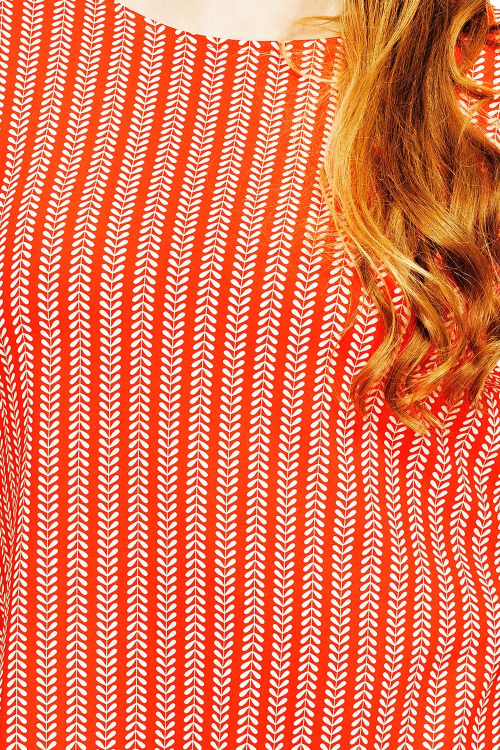 Tyget Ranka är inspirerat av sommarängar och vajande grässtrån. Mönstret har en mönstrad design med krämvita ränder mot en tomatröd botten.