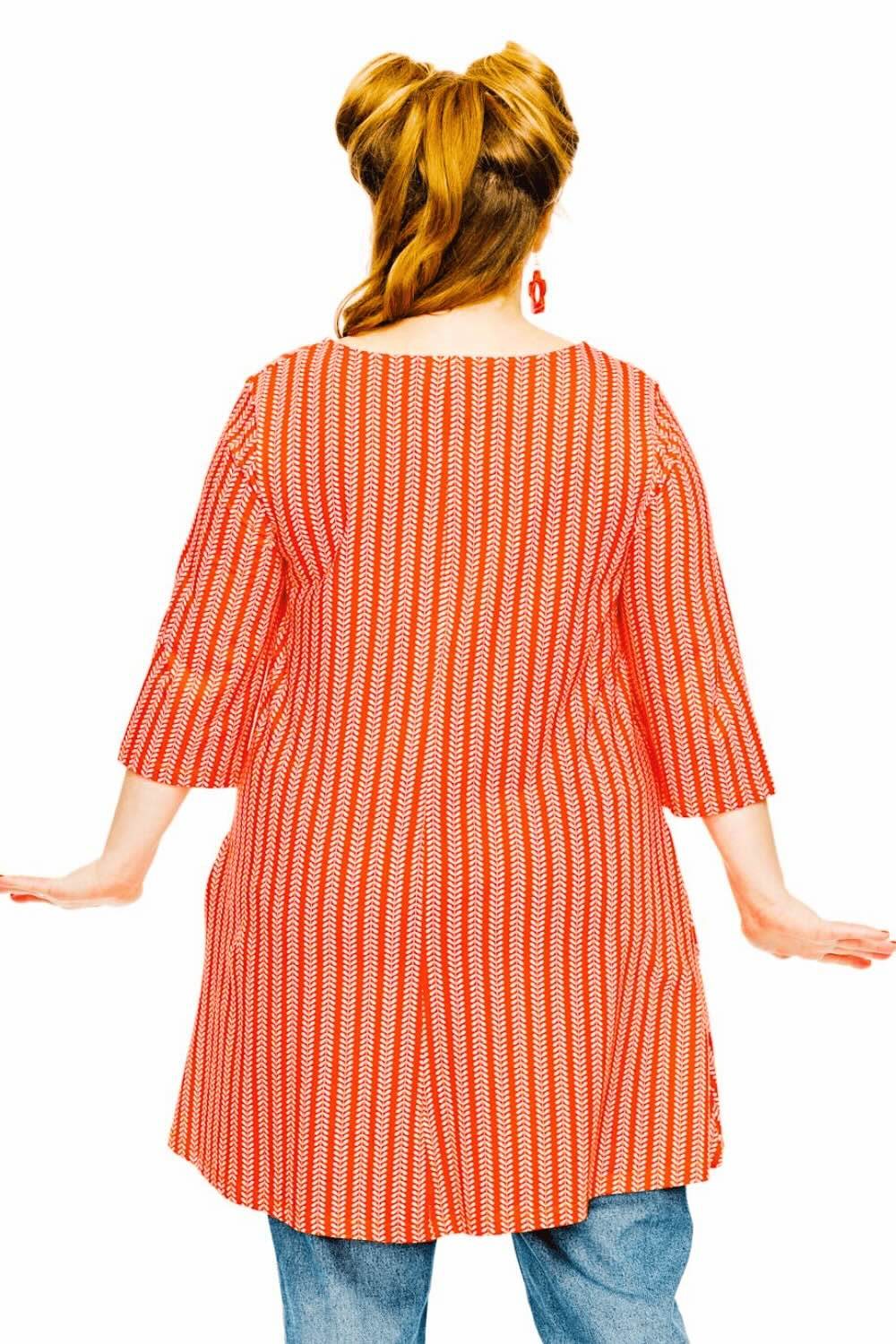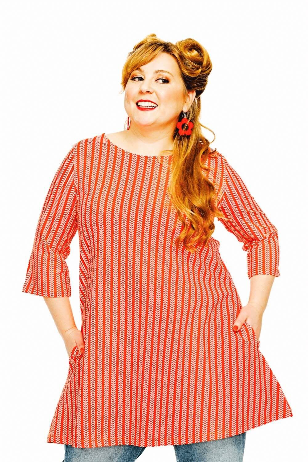 Anita är vår tunika i ekologisk bomullstrikå, perfekt för dig som vill ha en lite längre topp att bära över byxor. Självklart med fickor i sidan!