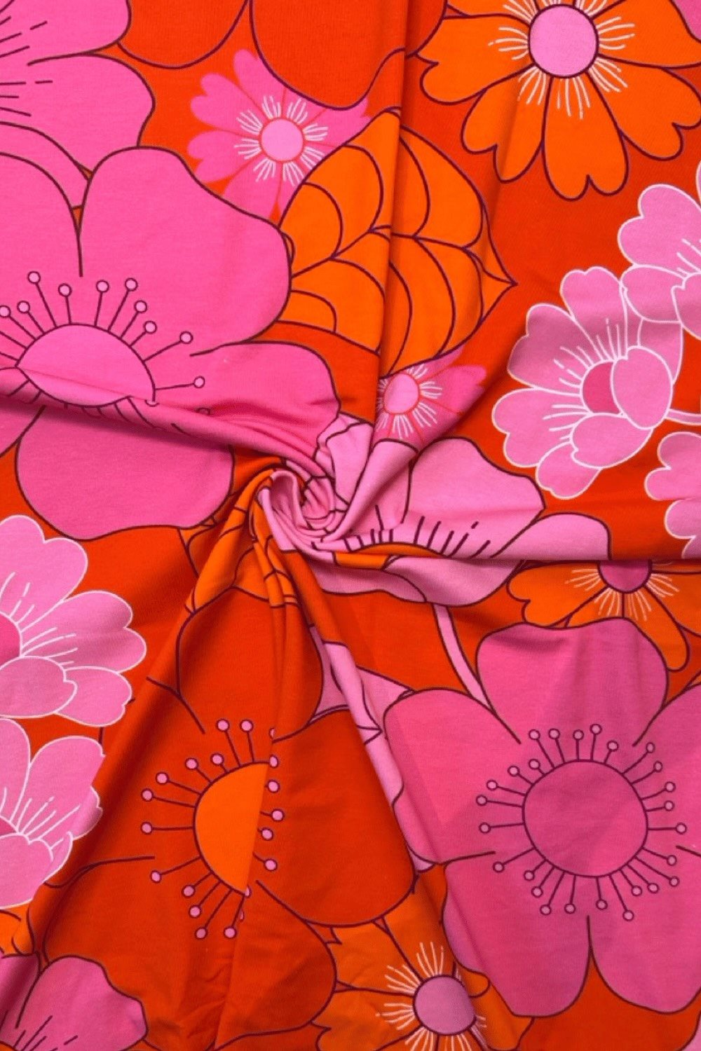 Mönstrat tyg i mjuk ekologisk bomullstrikå som kan sys upp i snygga, lättburna plagg, både för vuxna och barn.