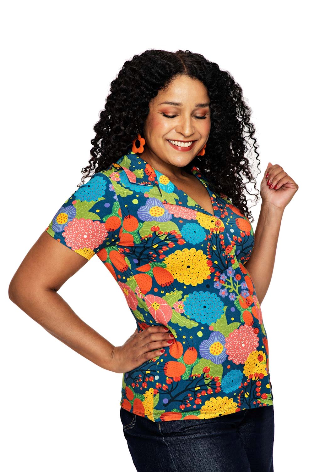 Skjortan har knäppning fram och en fin krage med slag. Jättefin att bära utanpå eller instoppad i kjol eller byxa. Du kan även bära den uppknäppt över ett linne. Margit är syster till Matilda som har samma design fast långa ärmar.