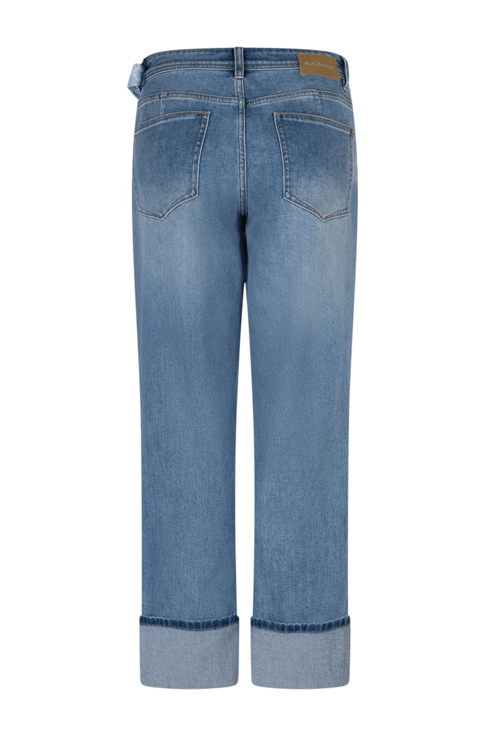 Blå jeans från märket Red Button i klassisk blå jeanstvätt med tillhörande scarf som en chic detalj att bära som skärp. Byxorna är gjorda av en stretchig bomullsblandning som gör att byxorna är bekväma att bära. De har raka vida ben och en hög midja, uppvik av byxben. Klassisk gylfknäppning och stolpfickor fram och klassiska jeansfickor bak.