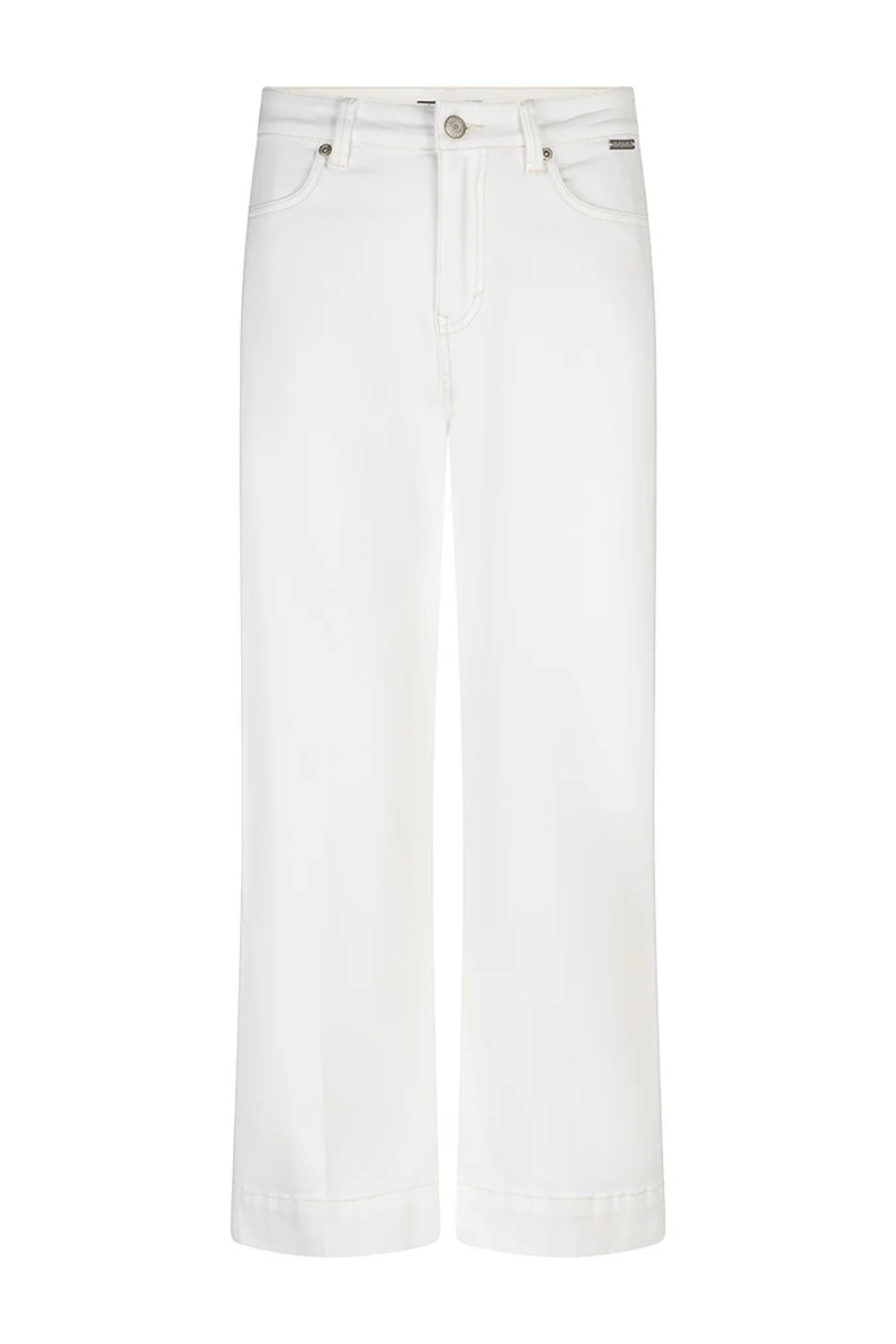 Vita jeans från märket Red Button. Byxorna är gjorda av en stretchig bomullsblandning som gör att byxorna är bekväma att bära. De har raka vida ben och en hög midja. Klassisk gylfknäppning och stolpfickor fram och klassiska jeansfickor bak.