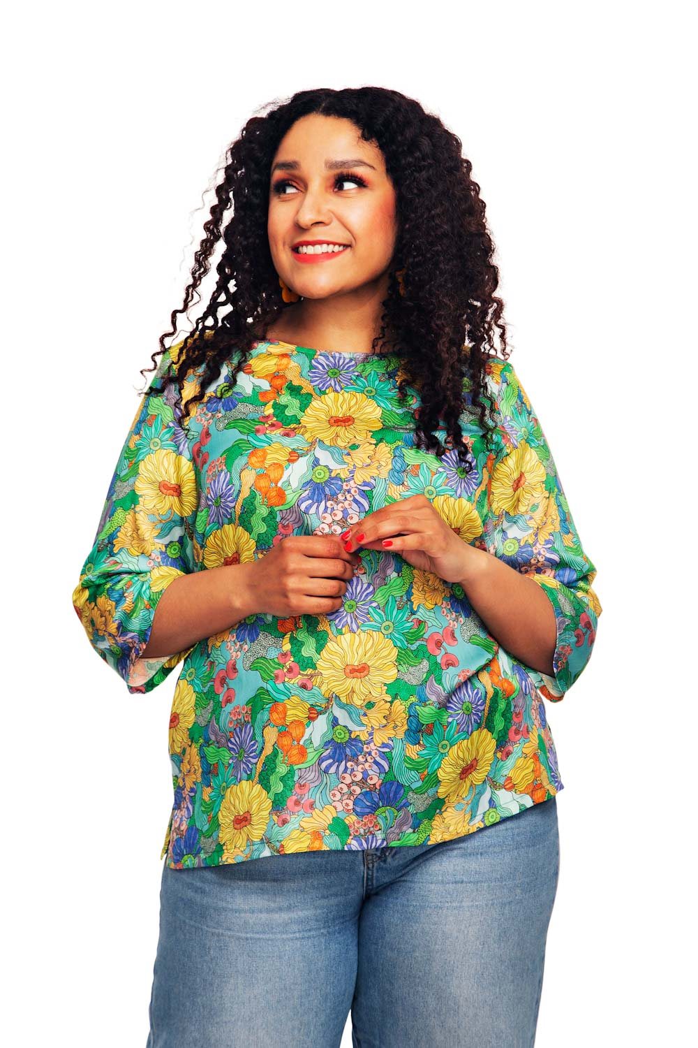 Elsie är en A-linjeformad topp i mjuk vävd Lyocell med trekvartsärmar. Toppen har sprund i sidorna vilket ger den en fin och smickrande passform. Tyg i Lyocell ger plagget en lyxig känsla då materialet känns lite som siden.