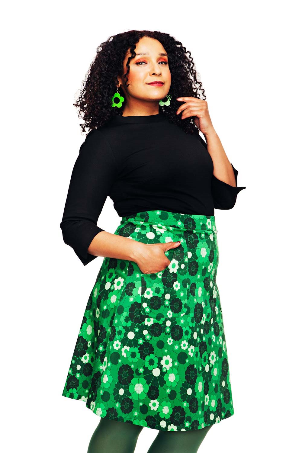 Sonja är en klassisk kjolmodell som är snygg oavsett säsong och trend. Kjolen har fickor i sidor, en bekväm linning och dragkedja bak. Kjolen är fodrad för att falla fint och inte hänga upp sig på dina strumpbyxor!