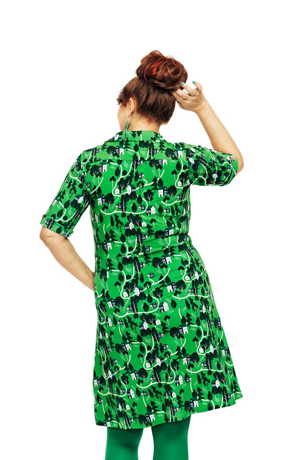 Monica är en 70-talsinspirerad skjortklänning i ekologisk bomull. Modellen har fina detaljer med knäppning fram, ärm med uppvik och knapp, krage med slag och fickor fram. En klänning att känna sig både bekväm och snygg i!
