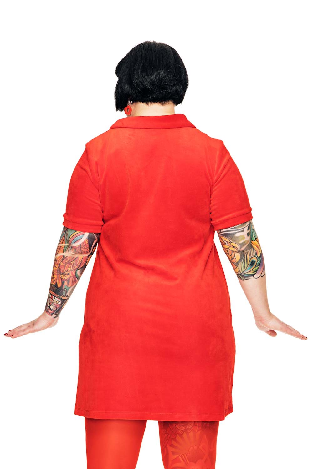 My i en härlig mjuk velour! My är en något kortare A-formad klänning i velour. Designen av klänningen är inspirerad av 60-talets mode. Klänningen är nättare upptill och har lösare passform nertill. Den har skjortkrage med en liten dragkedja, samt två påsydda fickor fram. My är en perfekt modell att variera, bär den med strumpbyxor eller mer som en tunika till ett par byxor. Passar lika bra till vardags som till fest.
