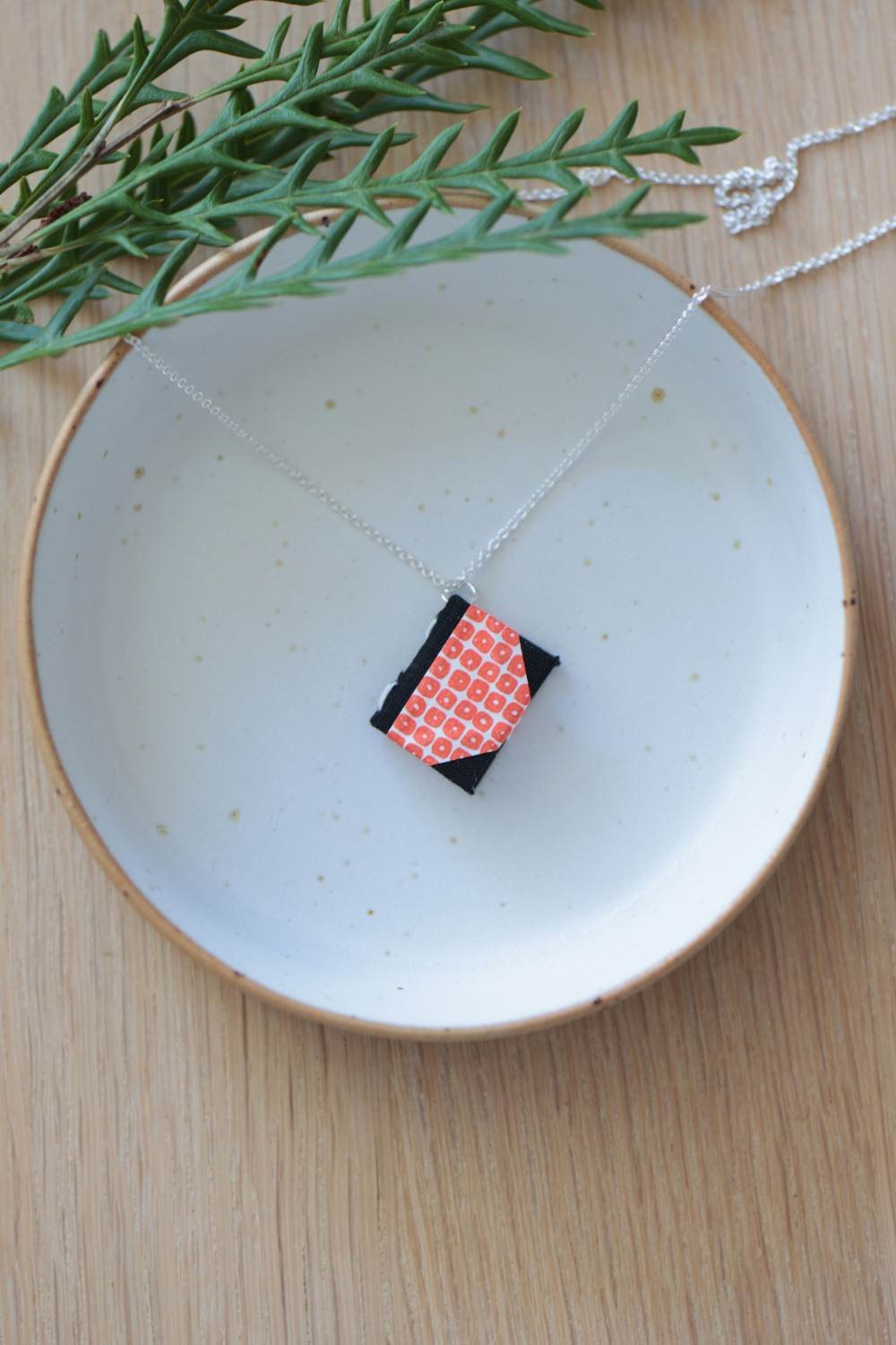 Boken mäter 2,5x2cm och är gjord i papper. Går att kombinera med örhängen i samma serie.